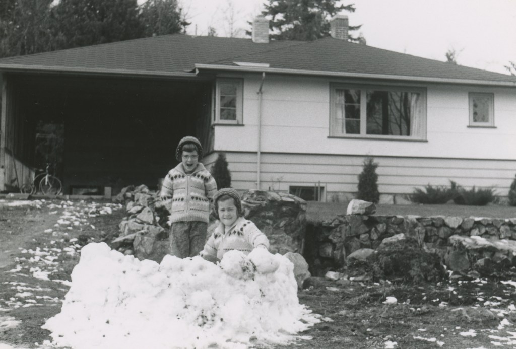 The 1950s brought two daughters, Vicki in 1950 and Sherry in 1953. Earle and Evelyn also kept busy upgrading their house, embarking on camping trips, spending days at the beach, playing in the snow, and trips to the prairies and USA.