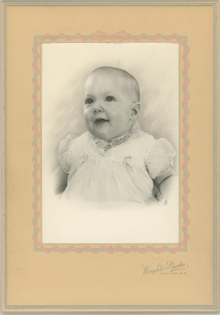 Evelyn was born March 13 1928 in Qualicum Beach, British Columbia, to Cyril (Frederick) and Alice (Maude) Bagnall. She was the youngest of two children and had an older brother Robert (Bob).