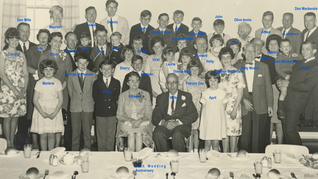 Nathan and Elfreda’s 50th Wedding Anniversary, Sidney BC, 1966Nathan and Elfreda’s 50th Wedding Anniversary, Sidney BC, 1966Nathan and Elfreda’s 50th Wedding Anniversary, Sidney BC, 1966 Back Row: Howard, Norman, Gerald, Olive, Earle, ElwinNathan and Elfreda’s 50th Wedding Anniversary, Sidney BC, 1966Nathan and Elfreda’s 50th Wedding Anniversary, Sidney BC, 1966Elfreda and Ye Olde Barn, Drayton Valley ABElfreda and friends, Drayton Valley ABDrayton Valley ABElfreda and Lawrence, Nova ScotiaHoward, Olive, Earle, Gerald, Elfreda, Norman, 1976Howard, Olive, Earle, Gerald, Elfreda, Norman, 1976Maude Bagnall & Elfreda Mitchell, Qualicum Beach BCFred Bagnall & Elfreda Mitchell, Qualicum Beach BCElfread’s 88th Birthday, July 1981Norman, Olive, Earle, Howard, Elfreda, July 1981