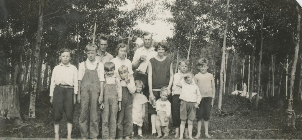 Earle, Norman, Elwin, Howard & Nathan Mitchell, Reno ABHoward, Earle, Elwin, and Norman Mitchell, Reno AB, 1924Elfreda, Reno AB, 1924ElfredaElwin, Norman, Howard, Earle & Elfreda MitchellElfredaNathan & Elfreda, Palmer’s Mill, Styal AB, 1926Francis Palmer, Norman, Elwin, Earle, Bob Palmer, Howard, Styal AB, 1926Norman, Earle, Elwin, Elfreda & Nathan, Chesel Hadley’s, 1925Norman, Elwin, Earle & Howard, Styal AB, 1926Howard & Gerald, Lehman AB, 1927Elfreda & GeraldGeraldVisiting the Lamoreux’s on the Pembina River, Reno AB, 1929Earle, Styal AB, 1927Friend, Elwin, Elfreda, HowardOlive, Entwistle AB, 1930Lawrence MitchellElfreda with friendsElfreda with friendsNorman, Nathan, Olive, Gerald, Earle, Howard & Friend, 1932Elfreda and Annie PalmerBerry picking, Drayton Valley, 1936-37Hystad’s Bunkhouse, Reno AB, 1938Hystad’s Bunkhouse, Reno AB, 1938Hystad’s Bunkhouse, Reno AB, 1938Elfreda at Palmer’s MillElfreda with friendLamoureux and Mitchell families, Reno AB, 1927. On left Guy & Kate Lamoureux with Stanley, Wilfred, Ward & Beth Lamoureux. On right Nathan & Elfreda Mitchell with Elwin, Earle, and Howard. Nathan on very left. Gerald in front of Effie.Norman, Elwin, Elfreda, Nathan, Earle (back row), Gerald, Howard, and Olive (front row), SK, 1933.